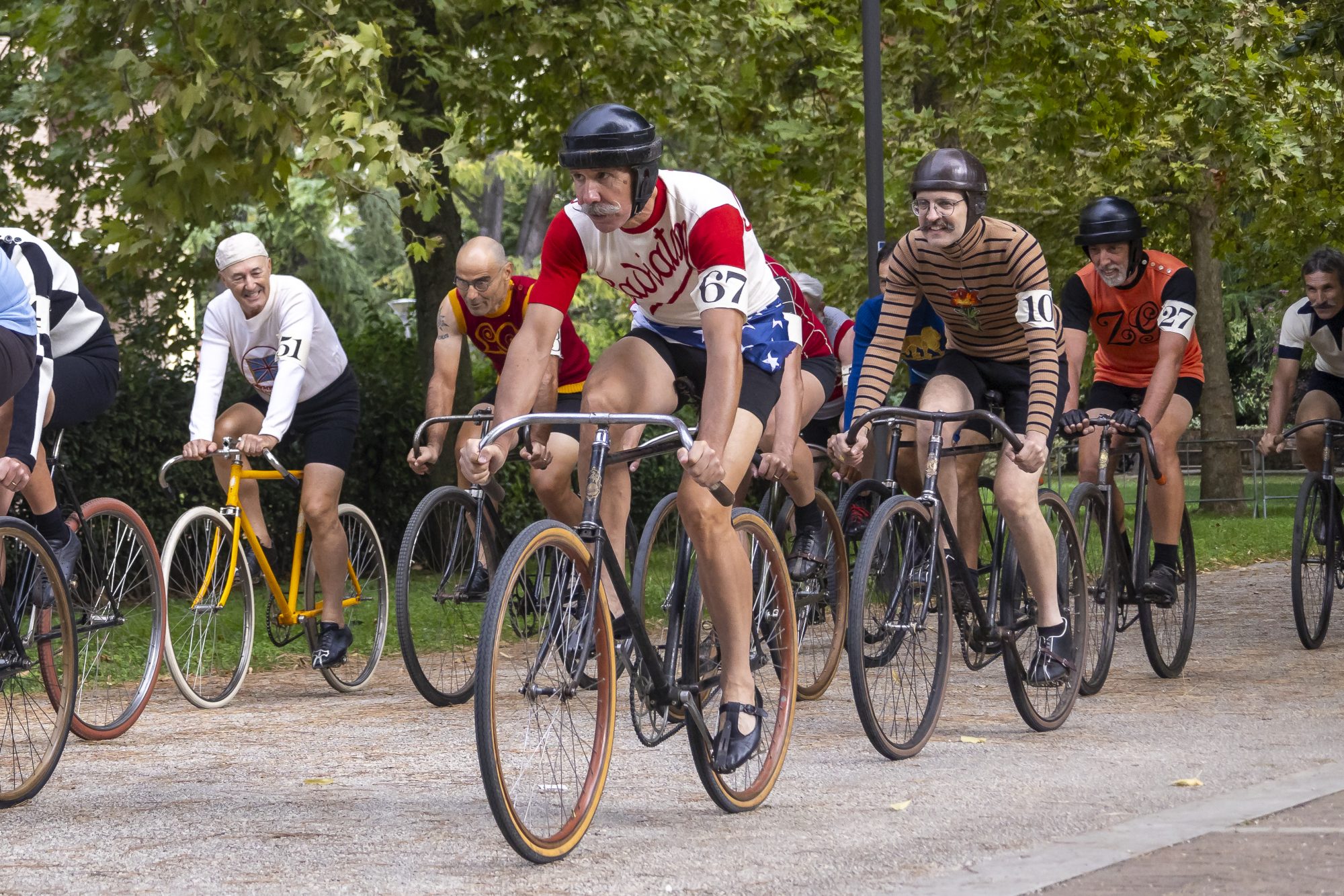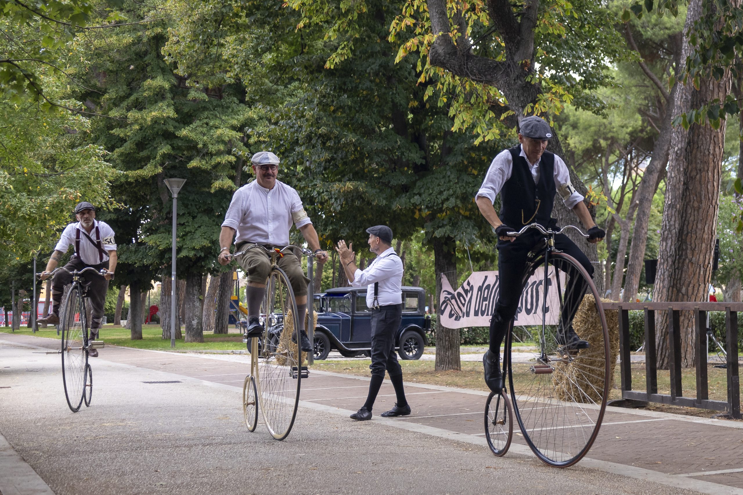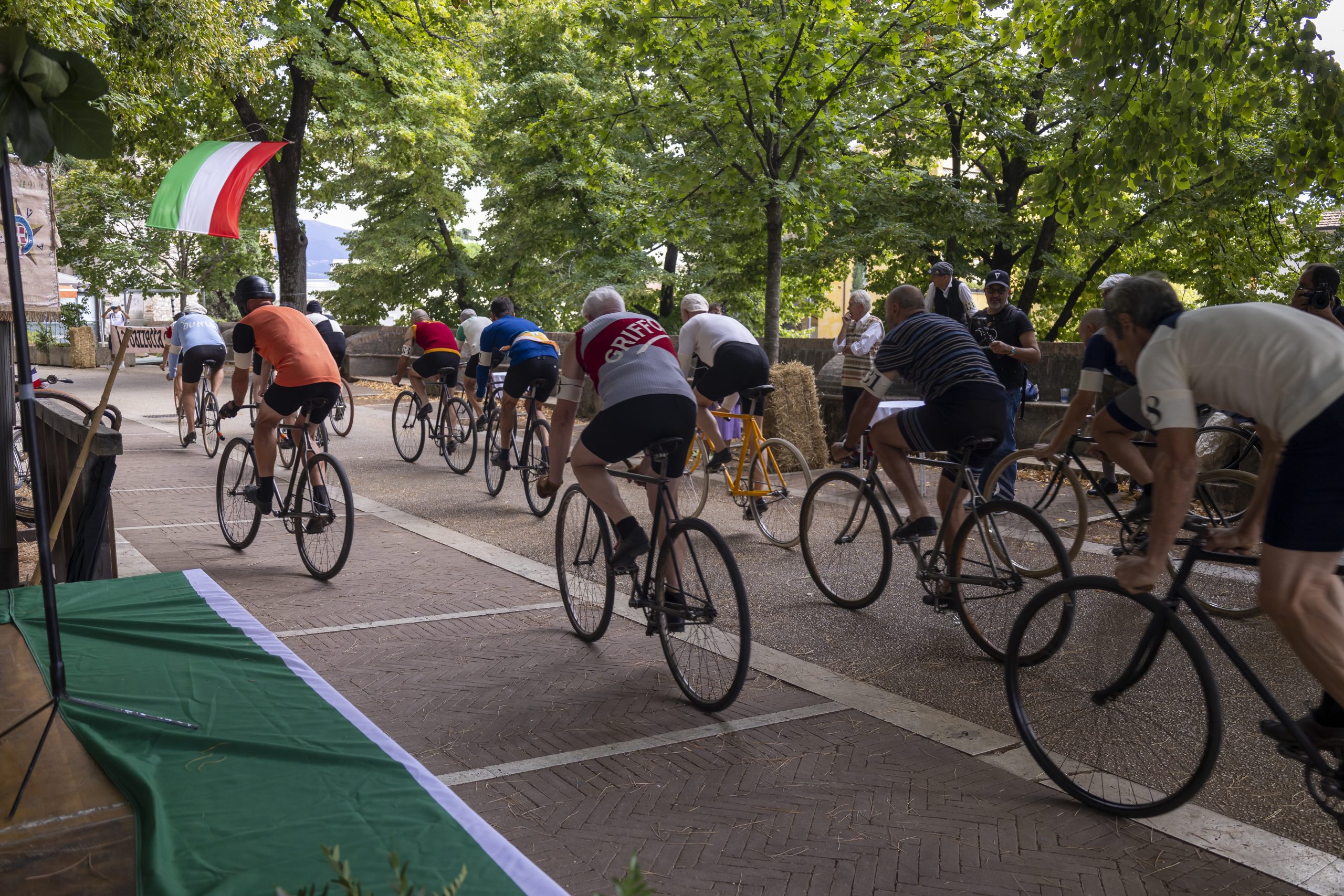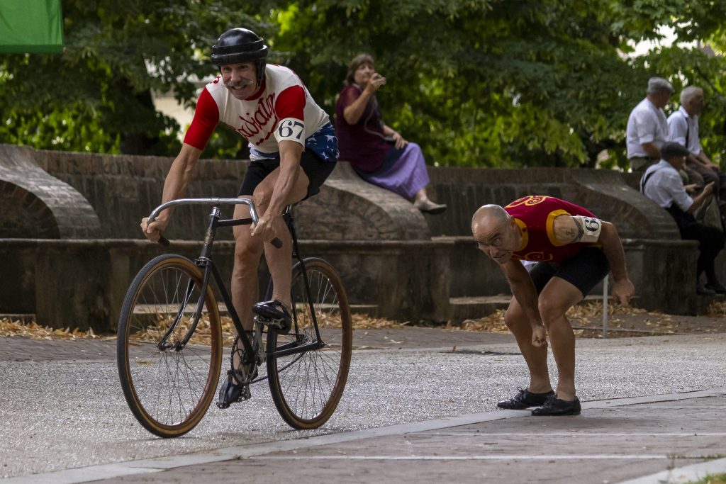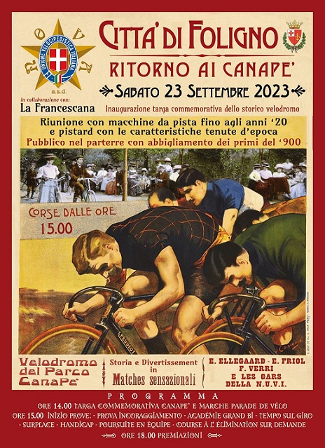 “Ritorno ai Canapè” è un’incantevole rievocazione delle corse ciclistiche nel vecchio Velodromo del Parco dei Canapè di Foligno, che riunisce appassionati di bici da pista fino agli anni ’20 e pistard con tenute e caratteristiche d’epoca. L’atmosfera vintage è completata dalla presenza di auto storiche e da un pubblico vestito con abiti dell’inizio del ‘900, trasportando i partecipanti in un affascinante viaggio nel tempo.